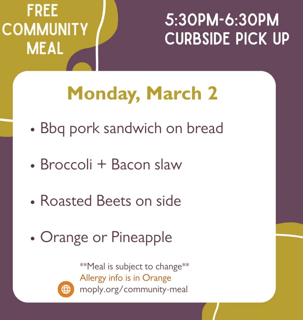 You can find our weekly community meal menu on FACEBOOK, on our website HERE, and through Mount Olivet’s weekly community e-newsletter. Sign up for the e-newsletter HERE.