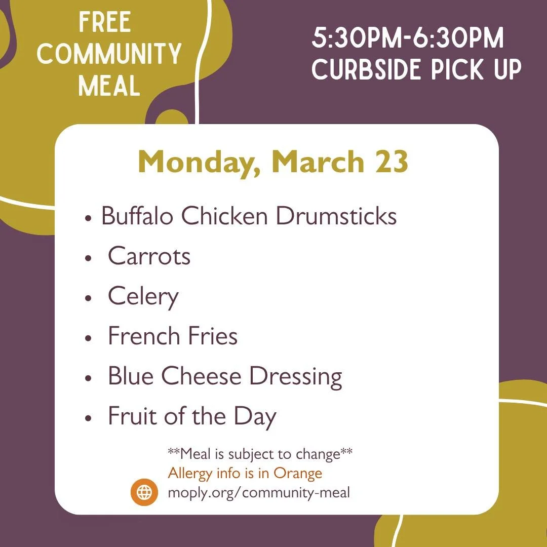 Meals are served curbside every Monday night from 5:30-6:30pm.